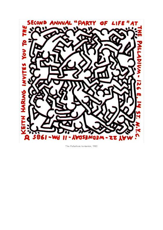 « Le Garage était le meilleur club qui ait jamais existé », se souvient Johnny Dynell. « C’était une question de bonheur, de musique et de danse. Ils ne servaient pas d’alcool, mais il y avait plein d’acide et plus tard, d’extasy. Le truc, ce n’était pas la cocaïne du Studio 54 et toutes les conneries qui allaient avec. Le Garage était un mode de vie. Les gens y allaient autant pour l’expérience communautaire que pour le divertissement. Keith s’y perdait totalement. On ne peut pas simuler ça… Pour un blanc… ce n’était pas la chose la plus facile. Il avait ses obsessions. Quand vous voyez quelqu’un avec différents garçons, et qu’ils sont tous noirs ou espagnols, il devient évident que c’est ce qu’il aime. Il a toujours été populaire, mais une fois connu, il était un vrai aimant à garçons. Il est devenu l’artiste officiel du Garage. Il a dessiné des T-shirts, organisé des fêtes et créé des invitations que nous collections précieusement. »