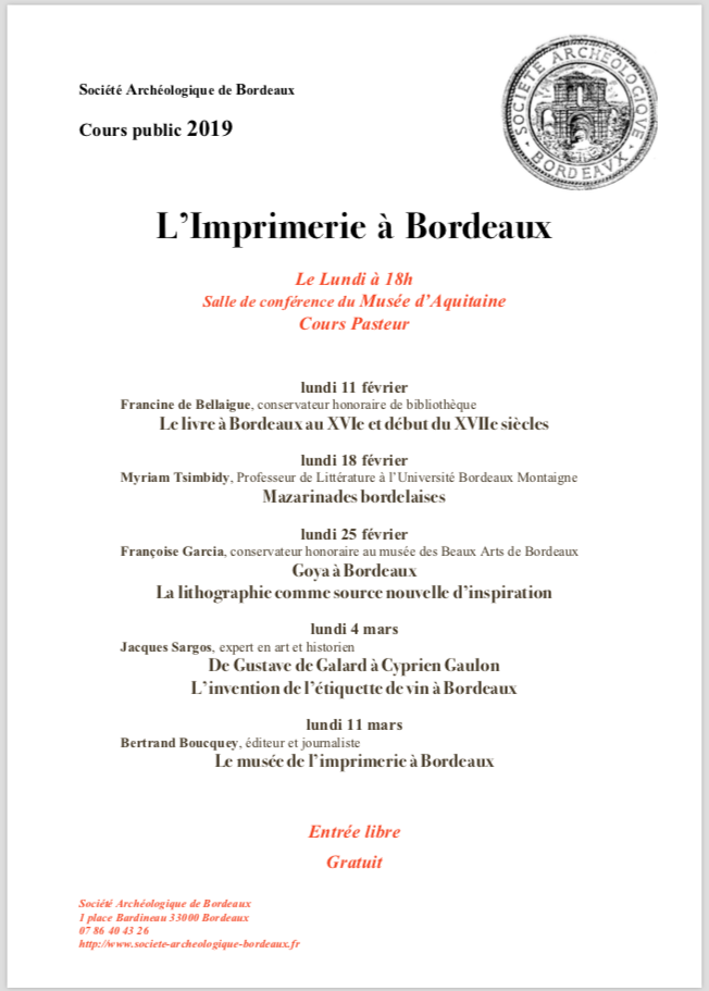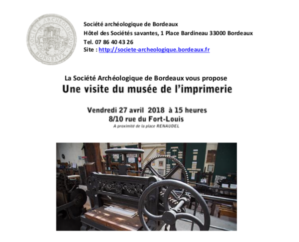 Cette visite motivant la série de cours public de ce début 2019, sur l’histoire de l’imprimerie à Bordeaux.