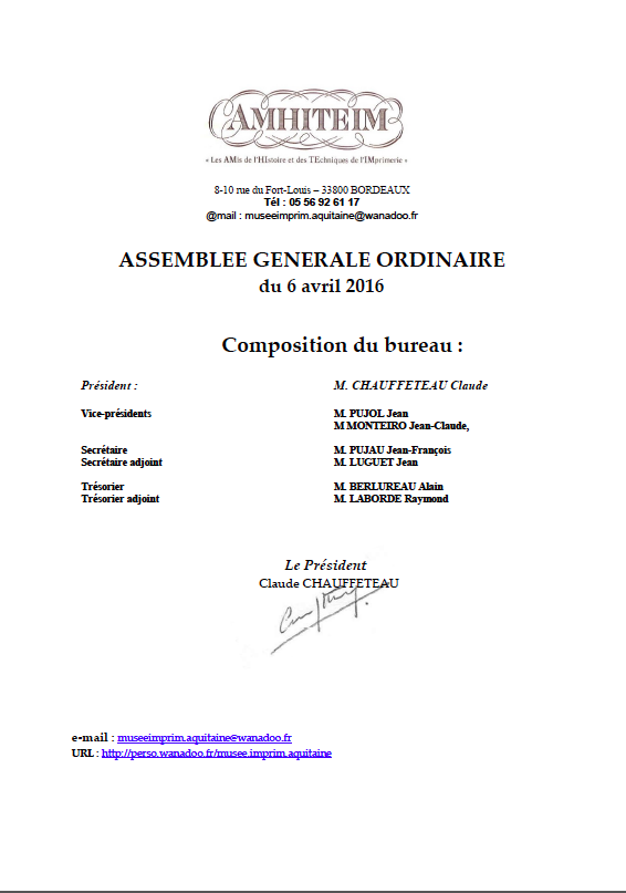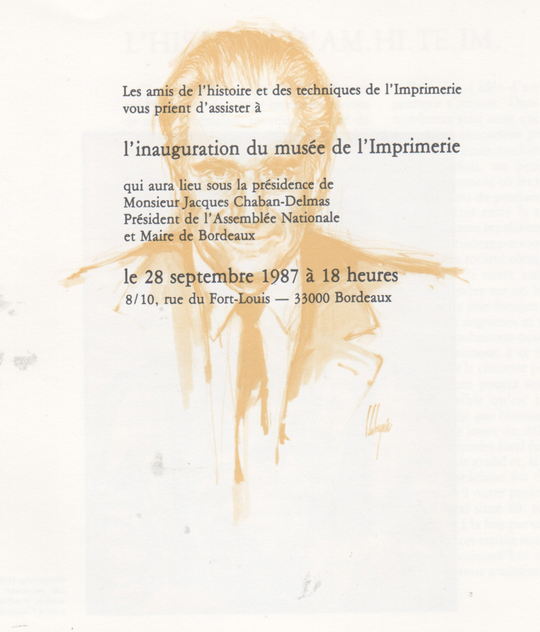 Le musée des AMis de l’HIstoire et des TEchniques de l’IMprimperie fut Inauguré en 1987 par le maire de Bordeaux M. Chaban Delmas.