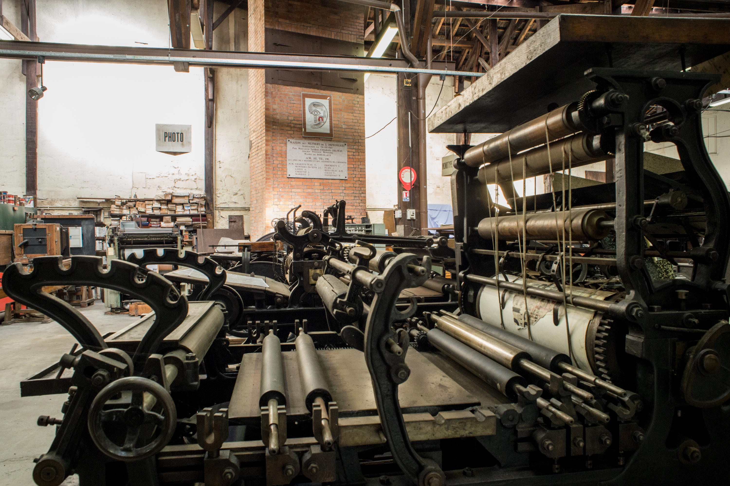 Les machines en sont avant tout les trésors, tombés entre les mains de passionnés, elles sont les témoignages vibrants et ronflants de l’ingéniosité humaine, au service d’une industrie qui fût dès sa création au 15ème siècle un artisanat d’excellence.
