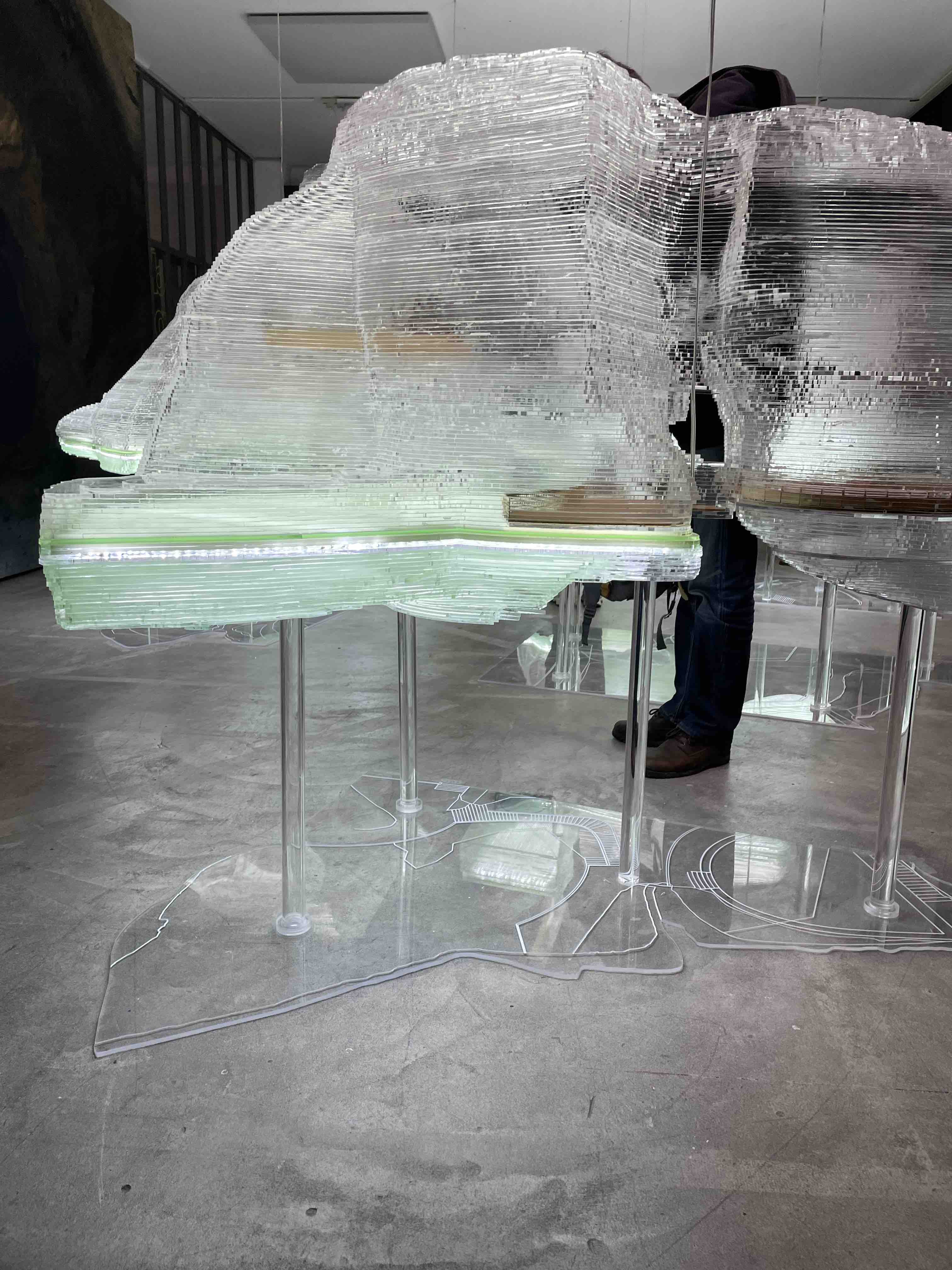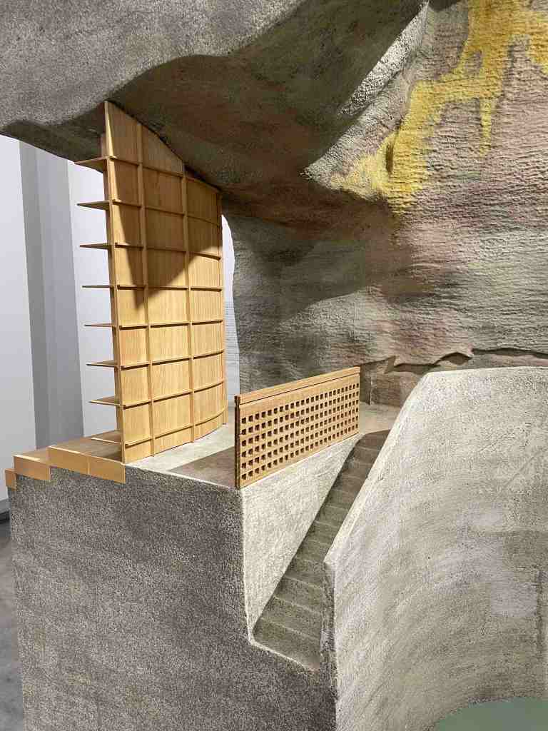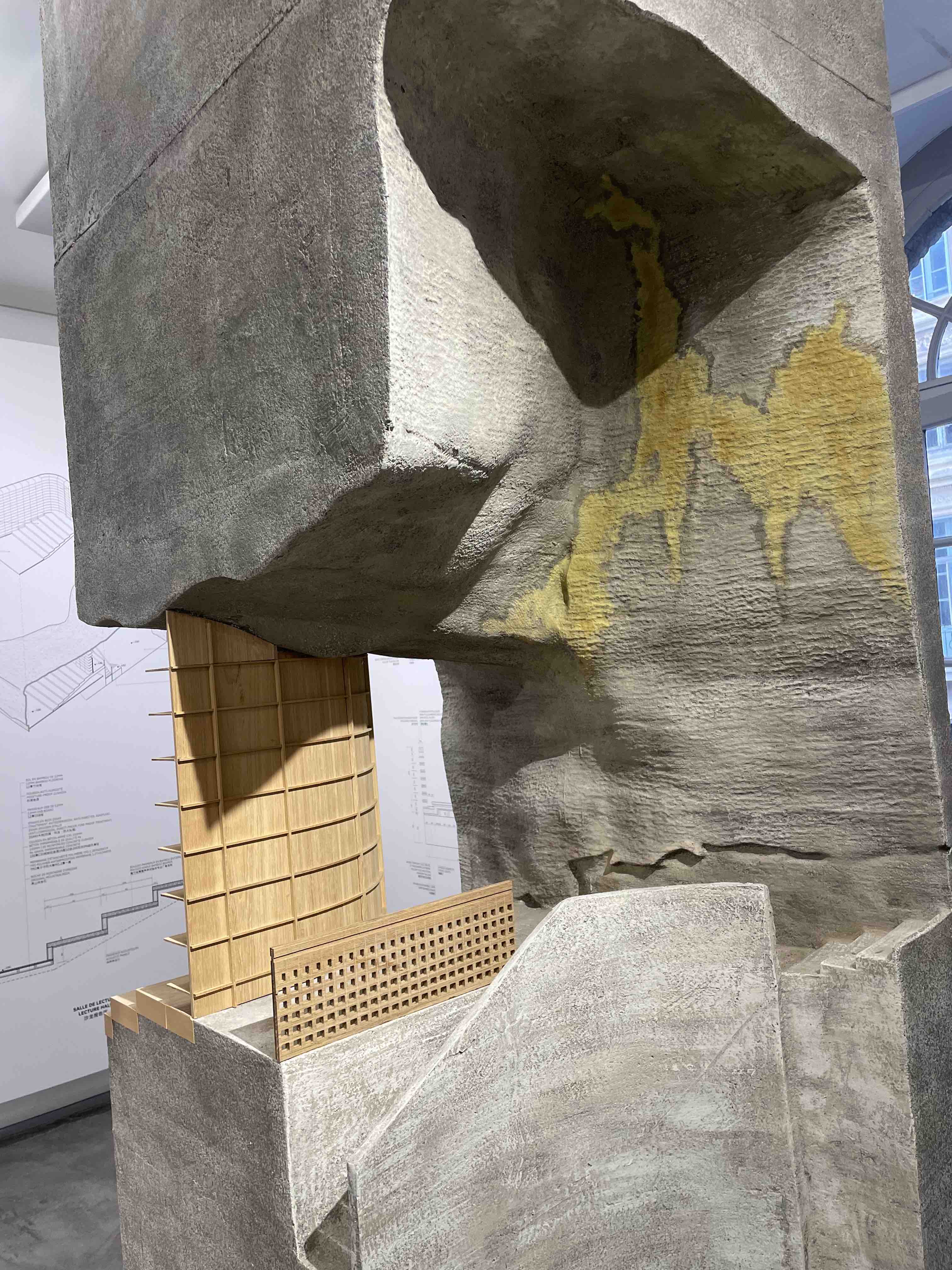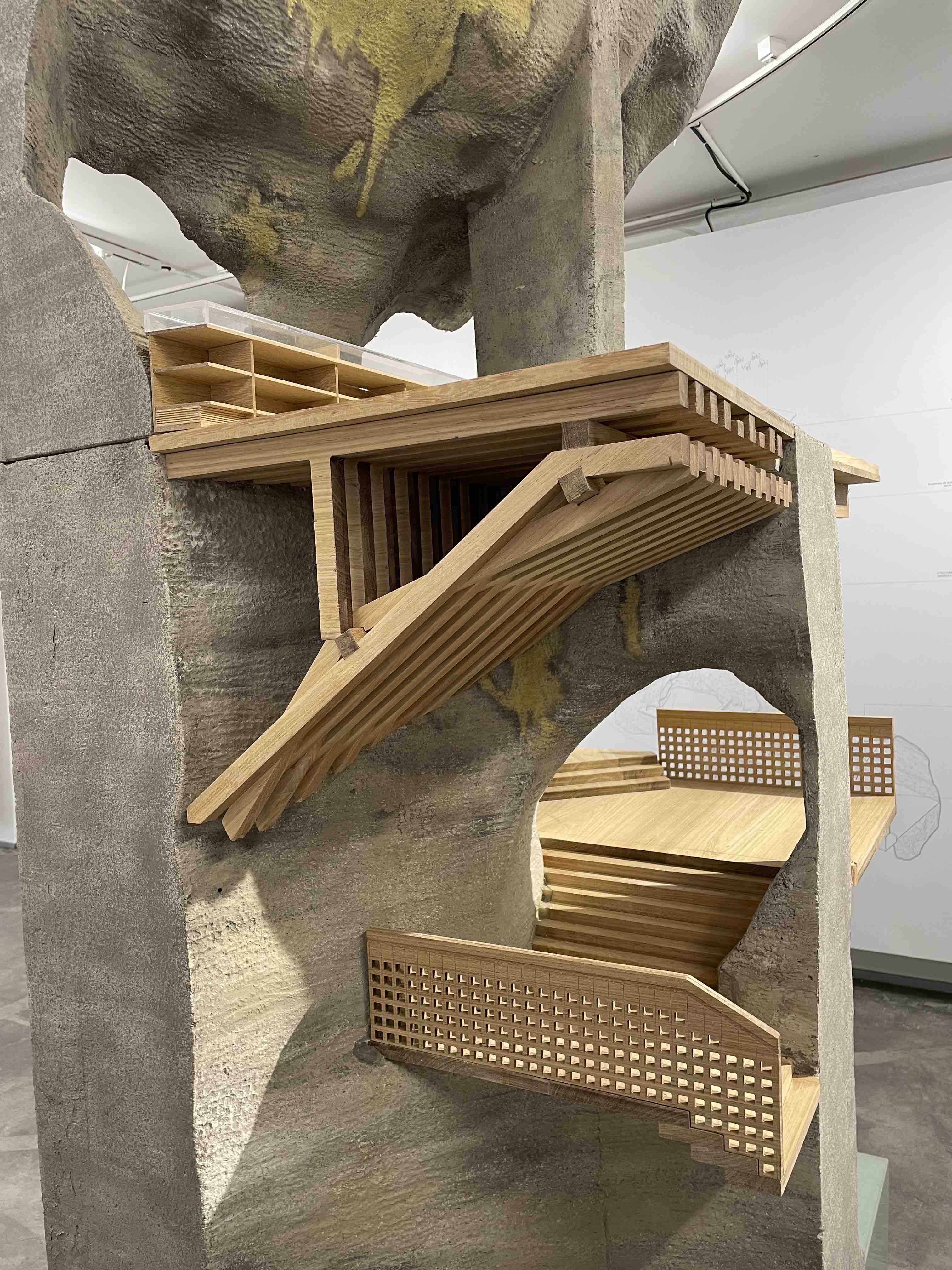 Des maquettes au vide scintillant sont exposées dans les salles d’Arc en Rêve, jusqu’au 27 octobre 2024, elles sont des montages originaux du studio DnA de l’architecte Xu Tiantian, telles des ruches luminaires aux équilibres intrigants, elles présentent les aménagements et les arcs de déplacements, tels qu’ils sont montrés dans des sites aux vides vertigineux, entre les passerelles et plateformes qui sont retenus par des solives de bois et les promeneurs par des rambardes de briques ; ces constructions provoquent l’admiration.