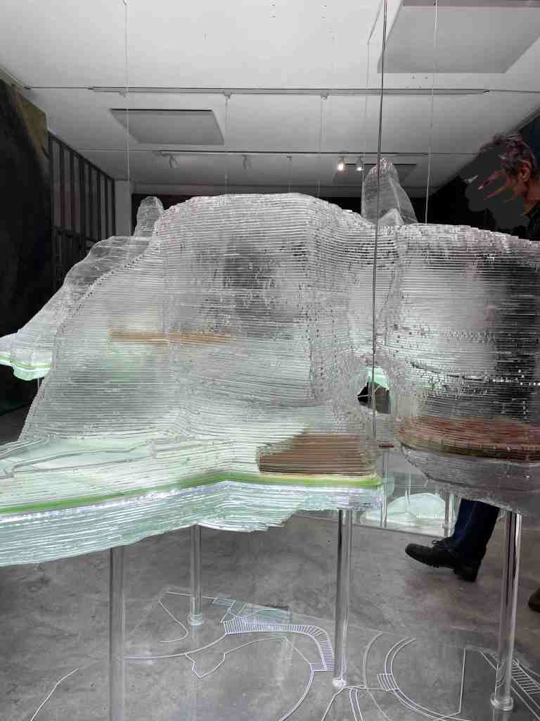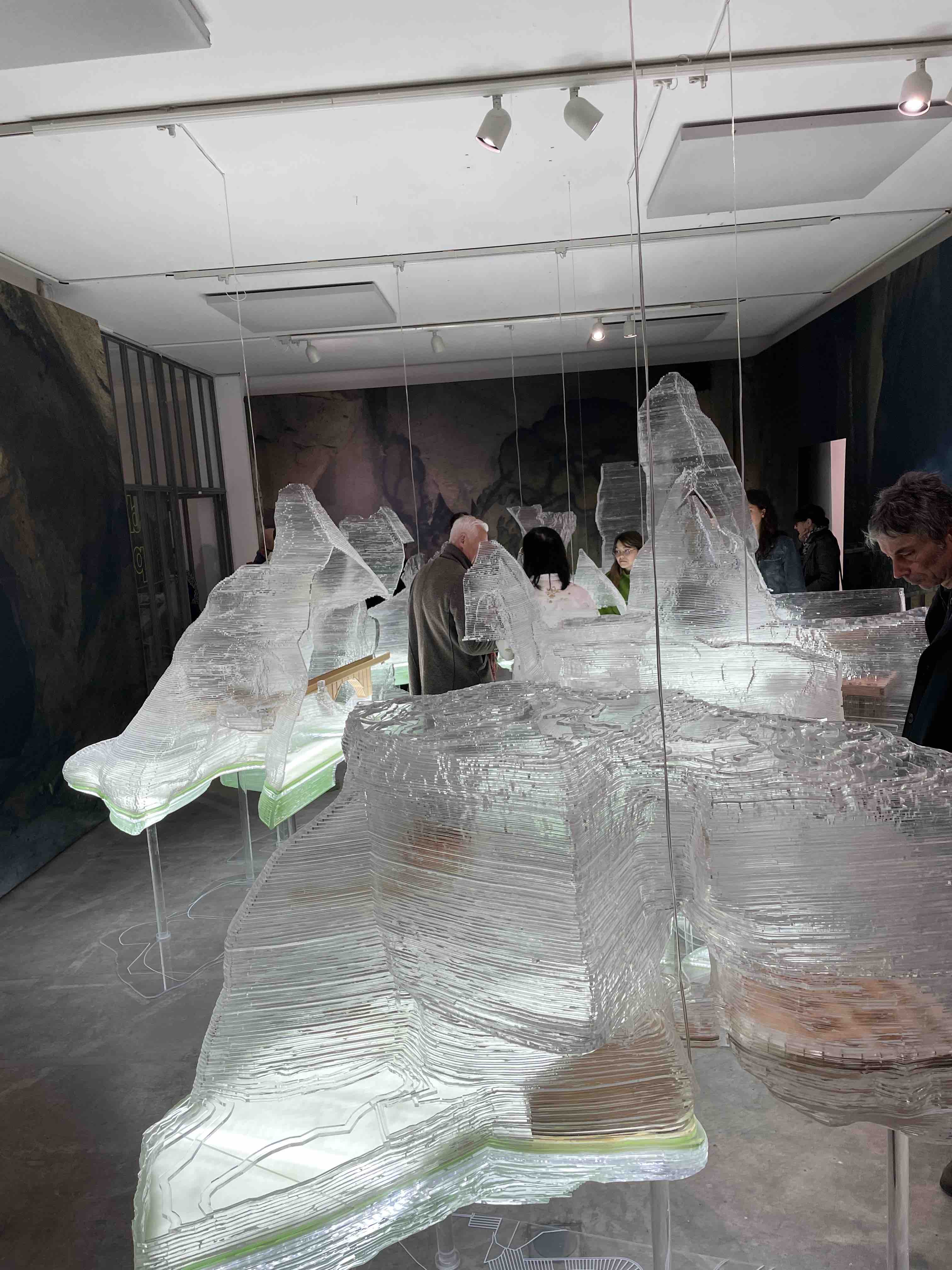 Les maquettes exposés par la studio DnA mené par l’architecte Xi Tiantian qui présentait dans une conférence le soir du vernissage en salle des conférences des entrepôts Lainé, son parcours éclairant exigences et attendus, avec l’éco responsabilité et les études d’impacts comme base de tous les développement et la nature intrinsèque de ses projets.